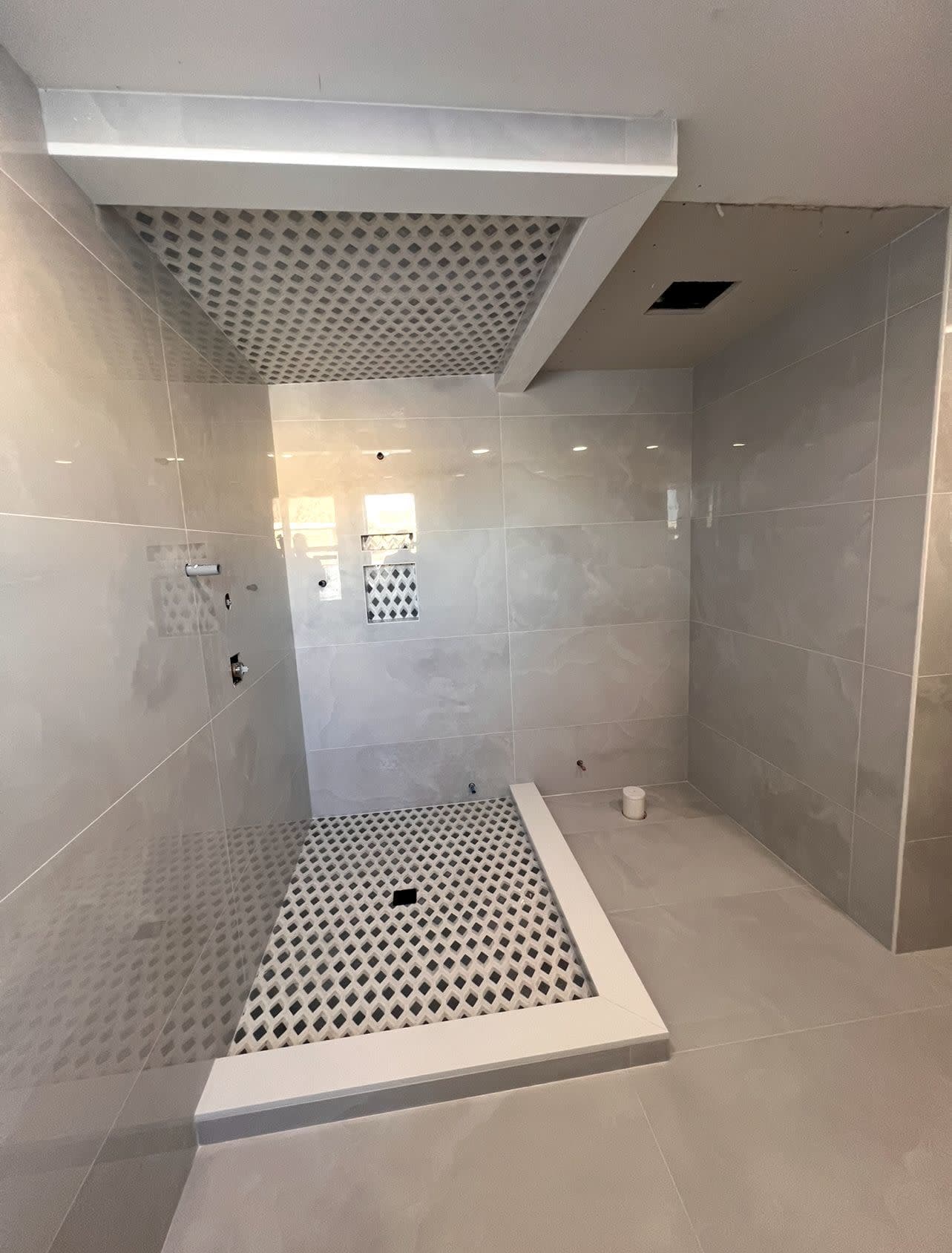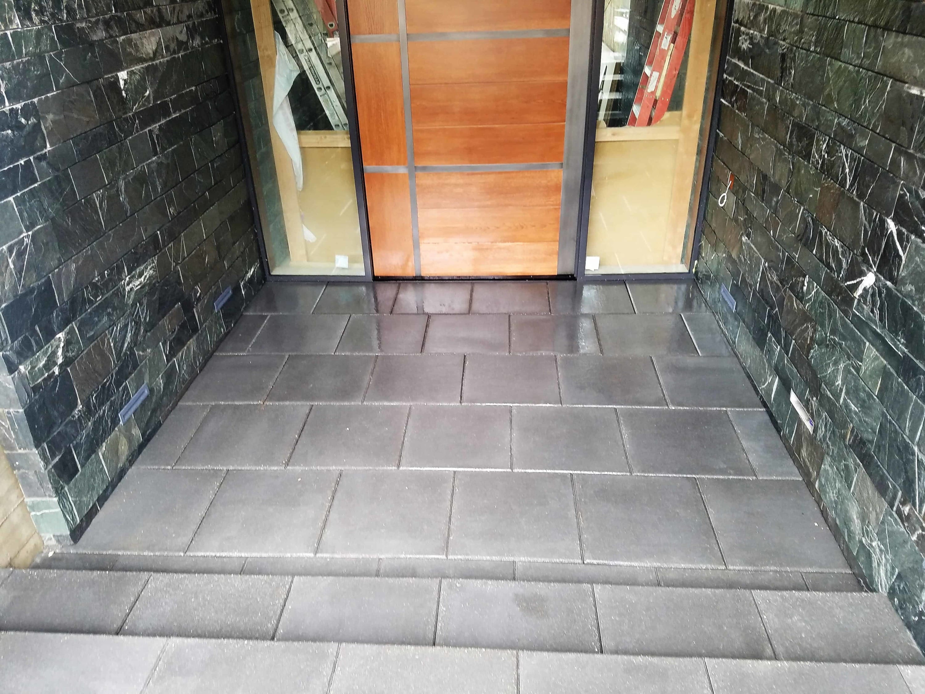 Services include custom tile work, stone installation, pavers, hardscape, patios, walkways, steps and detailed finishing.
